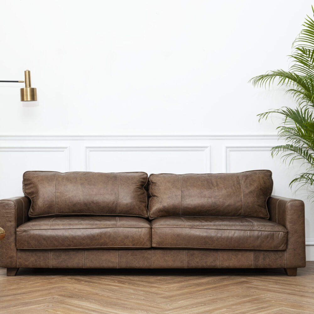 Sofá Clásico de Cuero Marrón